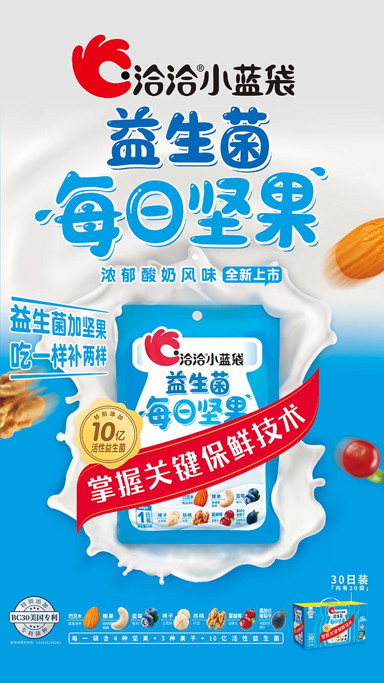 洽洽小(xiǎo)藍袋益生(sheng)菌每日(ri)堅果,立足于(yu)洽洽原味每日(ri)堅果的(de)品(pin)質(zhi),從(cong)功能(néng)性、好吃度兩箇(ge)維(wei)度進(jin)行創新(xin),“每日(ri)堅果+益生(sheng)菌”多(duo)重(zhong)營(ying)養一(yi)袋有(yǒu)。